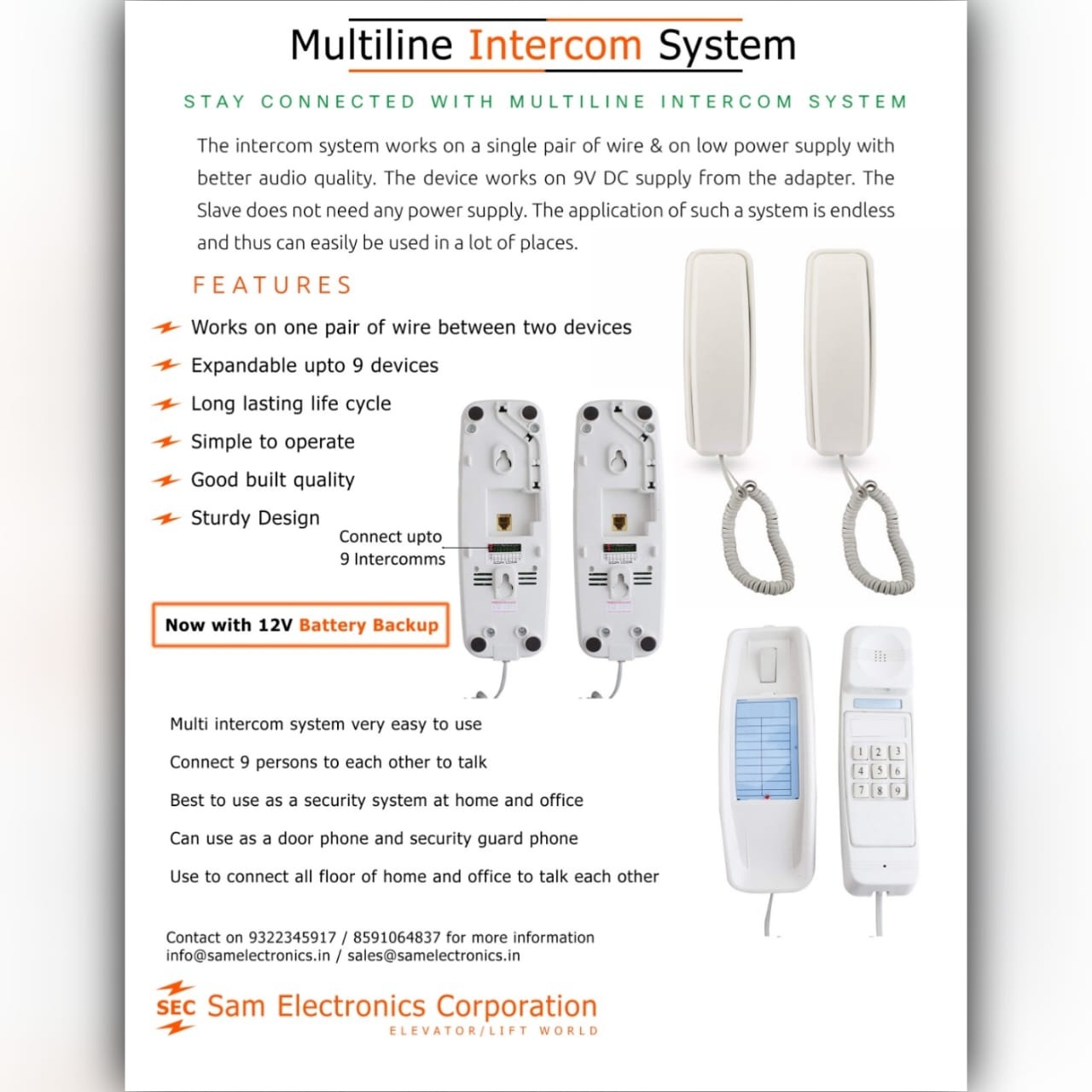 SAM Electronics Corporation is a trusted multiline intercom system manufacturer in Mumbai, delivering reliable and advanced communication solutions for commercial, industrial, and residential applications. Our multiline intercom systems are designed to ensure clear voice communication, seamless connectivity, and efficient internal coordination across multiple departments and floors. Manufactured using high-quality components and modern technology, our systems offer durability, easy installation, and user-friendly operation. We focus on customized solutions to meet specific client requirements, ensuring enhanced safety and productivity. With a commitment to quality, innovation, and customer satisfaction, SAM Electronics Corporation stands as a dependable name in Mumbai’s communication systems industry.